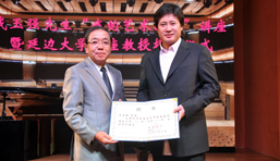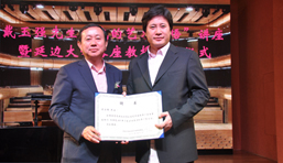 随后,宋在国理事长为戴玉强先生颁发了延边大学卧龙艺术团顾问聘书。朴永浩副校长为戴玉强先生颁发了延边大学客座教授聘书,并赠送了校庆60周年纪念品。