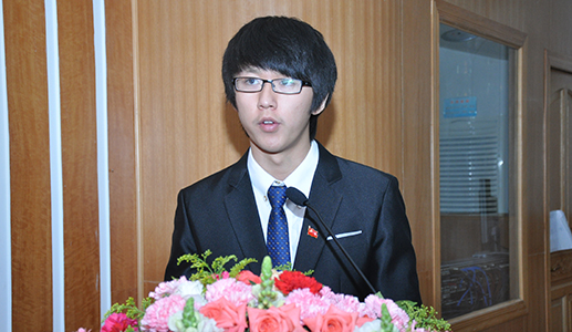 经济管理学院安俊杰同学代表获奖学生发言。他代表所有获奖学生感谢奖学金设立方、学校领导、老师表示感谢,表示以后会更加刻苦学习,努力为学校争光。