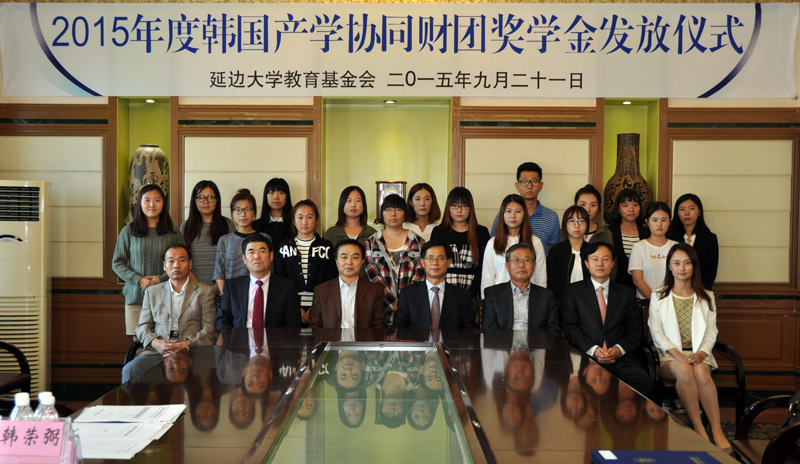 附注:延边大学2015年度“韩国产学财团奖学金”总资助金额107,461.15元,理学院和工学院共有16名学生获奖,每人6,716.32元。