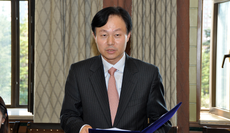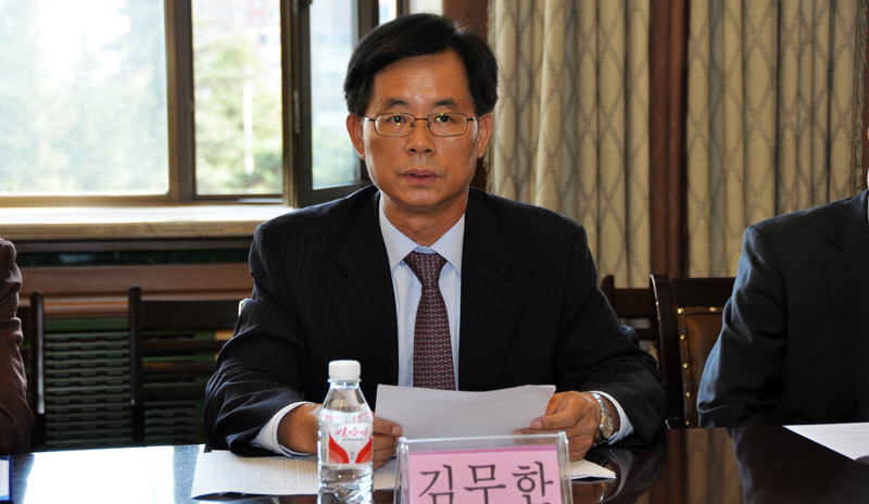 仪式开始前,副校长兼教育基金会副理事长盖同祥在学校办公楼二楼会议室会见了来访的金武汉事务总长一行。教育基金会副理事长兼秘书长李昌善、教育基金会办公室综合部主管尹华等陪同会见。
