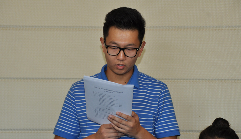 工学院2012级计算机科学与技术专业安靖波代表获奖学生发言。他感谢奖学金设立者-韩国产学协同财团的资助与学校老师的关怀,表示将以此为鞭策,在今后的学习和工作中,诚实做人,孜孜以求,用自己的成绩回报社会和母校。