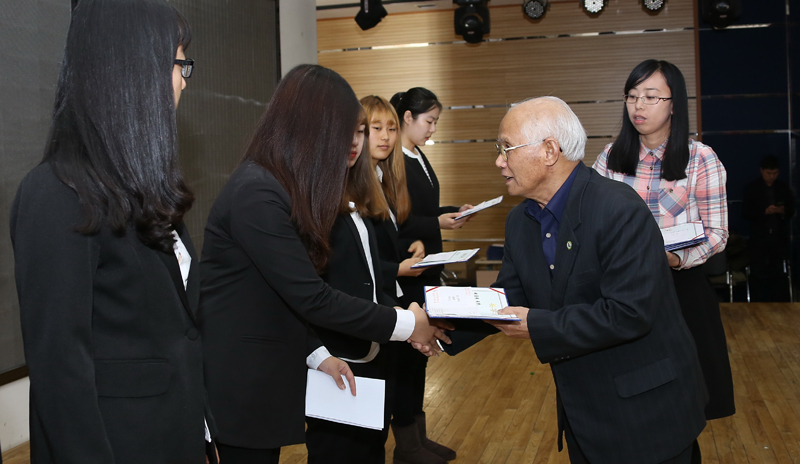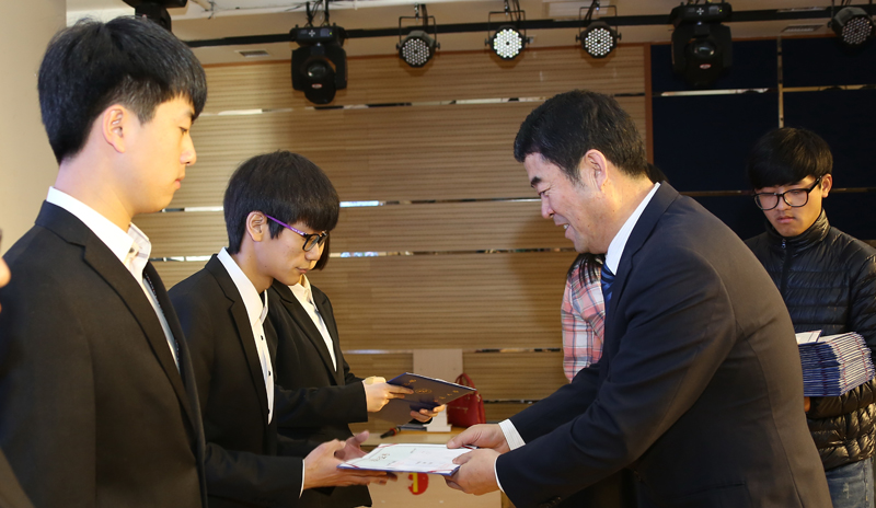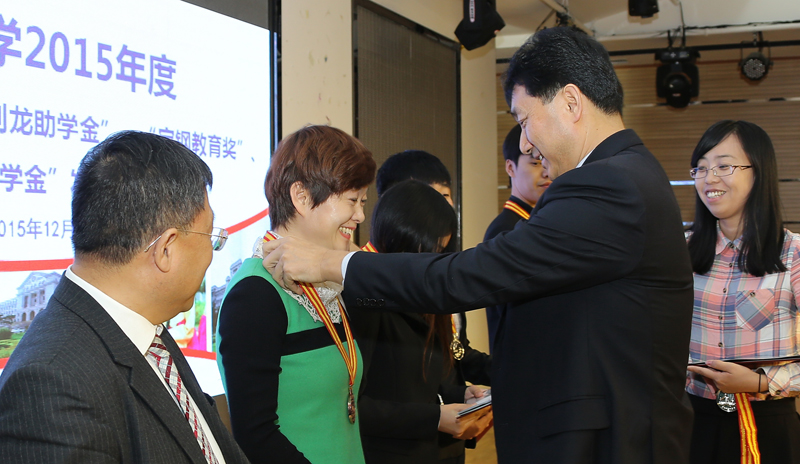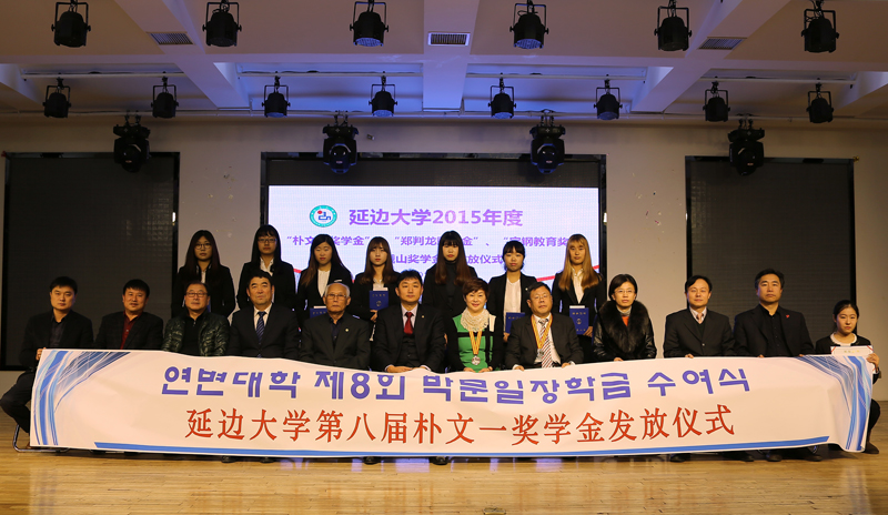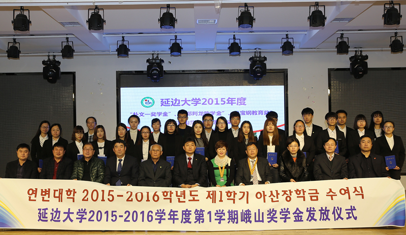 仪式上,郑光日宣读2015年“朴文一奖学金”、“郑判龙助学金”、“宝钢教育奖”、“峨山奖学金”获奖者名单。朴文一向“朴文一奖学金”获奖学生颁发证书及奖金;李逢雨、赵亮向“郑判龙助学金”获奖学生颁发证书及奖金;梁仁哲向“宝钢教育奖”获奖教师及学生颁发证书、证章、光荣册及奖金;李昌善向“峨山奖学金”获奖学生颁发证书及奖金。