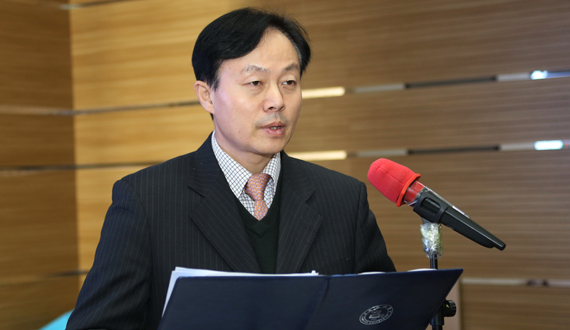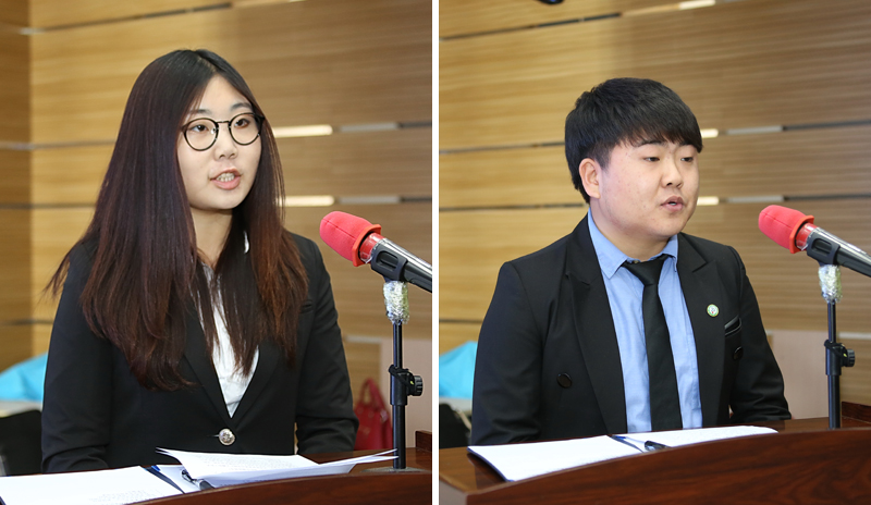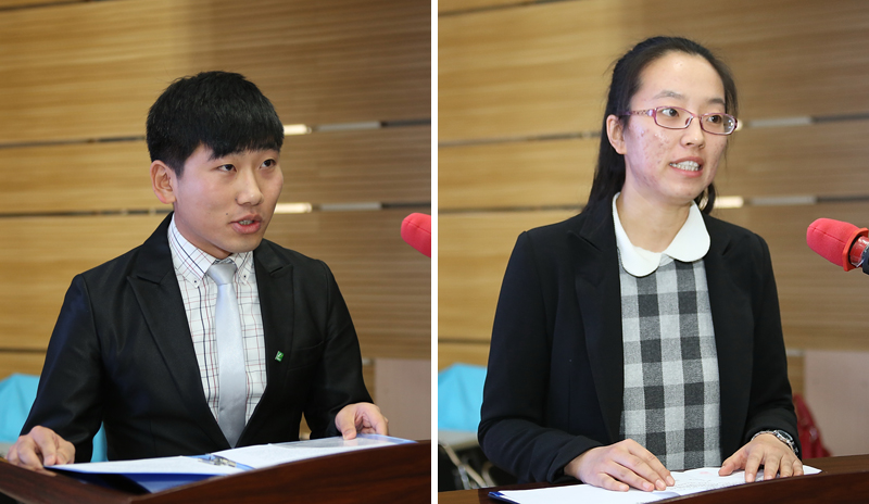 人文社会科学学院2014级汉语言文学专业赵贞琦、朝鲜-韩国学学院2013级朝鲜语言文学专业李伟烽、汉语言文化学院2012级汉语言专业裴磊敏、中医学院2011级中医学专业刘姚姚分别代表 “朴文一奖学金”、“郑判龙助学金”、“宝钢教育奖” 、“峨山奖学金”获奖学生发言。