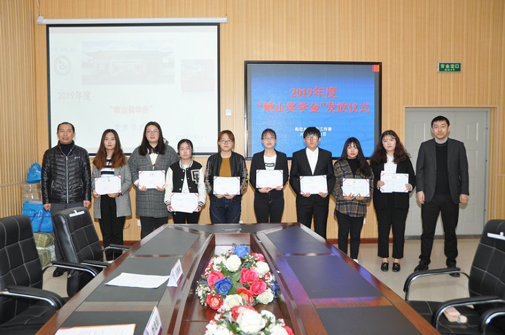 4月11日下午,2019年度“峨山奖学金”发放仪式在我校二食堂就业教育与服务中心洽谈室举行,延边大学教育基金会办公室副主任王洪国、延边大学学生处副处长李光星以及获奖学生参加了仪式,仪式由李文青主持。