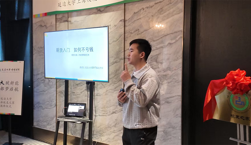 揭牌仪式后,上海校友会精心策划了“金融”主题沙龙活动。裕智资本董事长、延边大学客座教授王天飞、上海颜无界商贸有限公司总经理金虎川、上海东耀智创供应链有限公司主管袁绍文分别作了题为《后房地产时代的财富创造与资产配置》《颜无界》《期货入门:如何不亏钱》的主题分享,现场交流热烈,氛围融洽。