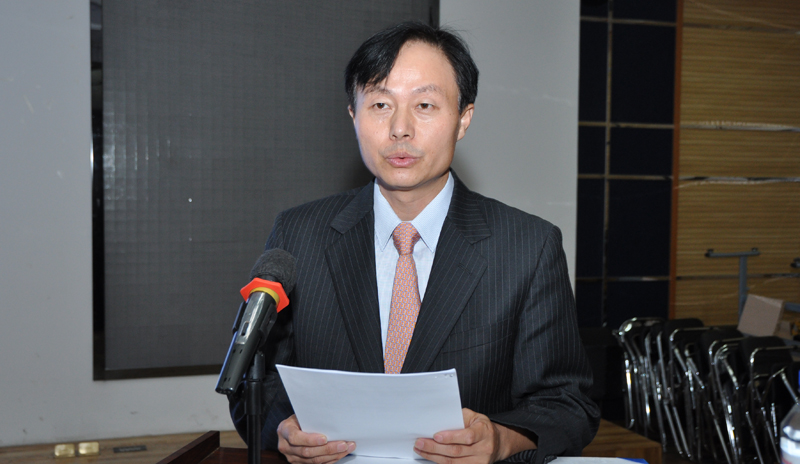 赵南哲致辞。他首先向获奖学生表示祝贺,并简要介绍了奖学金的设立过程及意义,他以上海乐扣乐扣贸易有限公司金俊一会长的创业故事激励学生,希望大家树立远大的抱负,努力在未来的社会、乃至世界各个领域上成为一名优秀的、卓越的全球型领军人物。