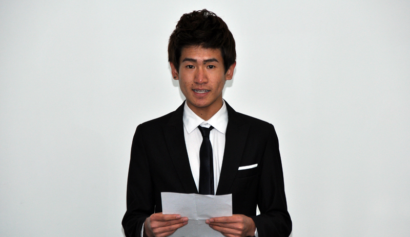 俄语专业2013级陈毕杨代表获奖学生发言。他首先感谢延边中铁旅行社有限公司的慷慨资助和学院领导、老师的深切关爱,表示会更加努力学习,不辜负领导