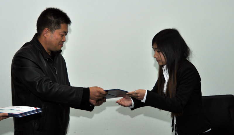 10月27日下午,延边中铁国际旅行社奖学金捐赠设立暨发放仪式在综合教学楼外国语学院资料室举行。延边中铁旅行社有限公司总经理李胜、延吉市汇源热力有限公司董事长王明坤,外国语学院院长郑鲜日、团委书记兼学生处副处长车松虎、外国语学院副院长南成玉、教育基金会办公室副主任王洪国及延边中铁旅行社有限公司部分员工、获奖学生等参加了发放仪式。仪式由教育基金会办公室项目管理科副科长梁京成主持。
